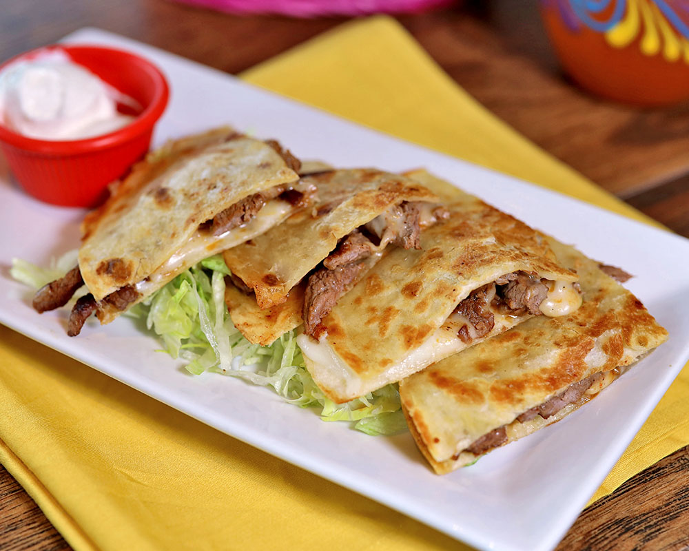 ORDER OF QUESADILLAS (2 filled with cheese) 7.50 Choices marinated chicken, shredded beef tips.